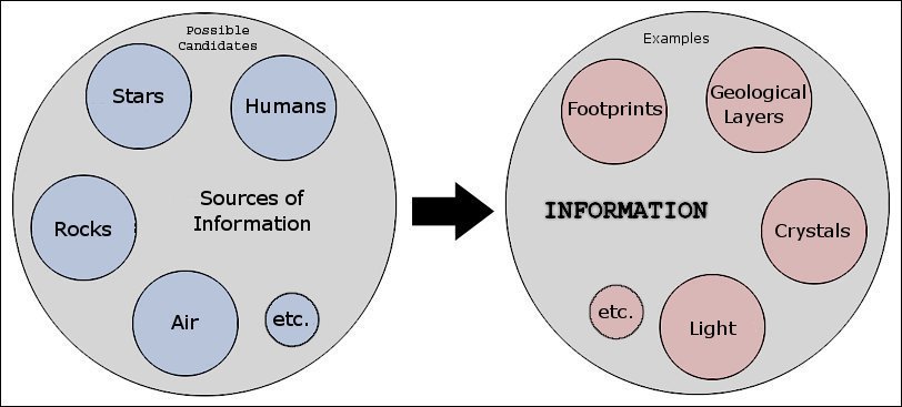 Anything in reality can be a source of information for us, as long as it can in some way be made apparent to our senses. The central claim of ID is that only intelligence can create information, but this is incorrect. All of reality is creating information all the time, and what humans often do is record that information. For example, if you're keeping a weather log and looking out your window write down that it is sunny, you didn't create the information that it is sunny. You merely transformed the information from one form (the sun shining in the sky) to another (written words on paper). --Percy